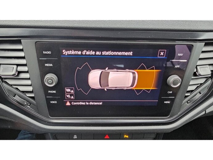 - Aide au stationnement avant et arrière avec signaux sonores etvisualisation de la distance des obstacles sur lécran de la radio
